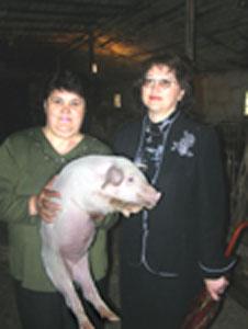 Павіншаваўшы яе з выйгрышам, мы разам накіраваліся на свінагадоўчую ферму раённага спажывецкага таварыства. Там нас чакала ўжо намеснік старшыні Жыткавіцкага раённага спажывецкага таварыства Валянціна Максімаўна Белаглазава і загадчыца фермы (яна ж адначасова і ветурач) Людміла Уладзіміраўна Рыбак, якія таксама павіншавалі Наталлю Князеву з перамогай у конкурсе і прапанавалі самой выбраць свой выйгрыш. Парасятка, якое патрапіла ў рукі жанчыны, было жвавым, але мы паспелі падлавіць момант, каб сфатаграфаваць яго цяперашнюю гаспадыню з жывым падарункам.