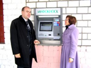 НА СНИМКЕ: заместитель председателя райисполкома С. С. Тоболич и директор филиала №311 АСБ «Беларусбанк» Т.Н. Котович во время открытия инфокиоска в здании поликлиники.