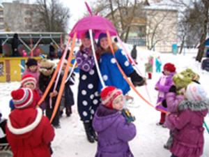 Родители и дети собрались в ожидании праздника, ведь по народной традиции четверг — это «Разгуляй» со снежными забавами, катанием на санках и лошадях. И вот яркие скоморохи — призывают всех веселиться. Шутки, смех, хороводы, сказочные герои, все кружилось и пело, звонкий детский смех разносился по всей округе. Здесь и соревнования с Бабой Ягой по перетягиванию каната, и соревнования малышей по проползанию в тоннеле, и народные игры — всего не перечислишь.