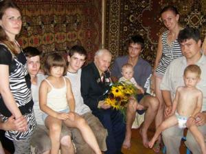 НА ЗДЫМКУ: ветэран Вялікай Айчыннай вайны і педагагічнай працы П.В. Века разам са сваімі ўнукамі, праўнукамі.