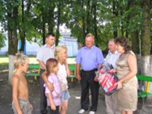 В ходе нее по всем сельским и городским Советам депутатов будет вручено 60 портфелей со школьными принадлежностями детям из многодетных и социально-опасных семей, идущих в школу с 1 по 11 классы. Финансирует это благое дело два депутата Гомельского областного Совета депутатов — Сергей Сосновский, Михаил Саскевич и 39 депутатов Житковичского районного Совета депутатов за счет личных денежных средств. НА СНИМКЕ: председатель районного Совета депутатов Нина Романович вручает школьный портфель с принадлежностями детям из многодетных семей в базовой общеобразовательной школе деревни Запесочье.