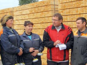 Техническую сторону всего производственного конвейера обеспечивают лесовоз, сортиментовоз, трактор и автопогрузчик. В две смены трудовую вахту на участке по лесопилению несут 40 человек из близлежащих населенных пунктов Хвоенск и Погост, Озераны да Переров. В основном это молодые мужчины и женщины, за плечами у которых семьи, так что работой своей они дорожат и трудятся на совесть. Перерабатывают гораздо больше древесины, чем это было в прежние времена, при бывшем Туровском леспромхозе, а выполнение и значительное перевыполнение месячных заданий и планов давно стало для них неписанным правилом и законом. Приятно было побеседовать со старшим мастером цеха Анатолием Германом, послушать его интересный комментарий к работе своих подчиненных с характерным полесским говорком, понаблюдать за самой работой местных умельцев деревообработки. Анатолий Арсентьевич сохраняет в коллективе атмосферу доверия и взаимопомощи. Он работает не на славу, а на совесть. Руководство предприятия ему доверяет, на участке его уважают, а это для Анатолия Германа — лучшая награда за труд.