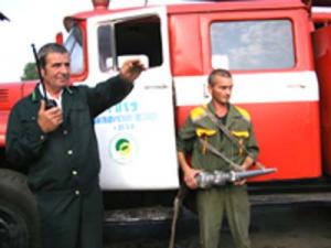НА СНИМКЕ: начальник ПХС ГЛХУ «Житковичский лесхоз» (кстати, достойно работающий на предприятии с 1973 года) Леонид Матвеевич Полещук и водитель пожарной машины Сергей Рай (слева направо) во время инструктажа на одном из лесных объектов.