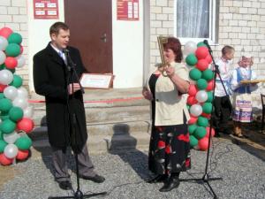 І вось настае самы ўрачысты момант падзеі. Начальнік аддзела культуры райвыканкама Сяргей Агіевіч пад дружныя воплескі людзей уручае сімвалічны ключ ад установы яе дырэктару Жанне Санюк, а таксама сертыфікат на падарунак – тэлевізар. Пасля чаго Генадзь Пятровіч Лясько, Ніна Мікалаеўна Рамановіч, Валерый Маркавіч Рагалевіч пераразаюць чырвоную стужку на ўваходзе ва ўстанову.