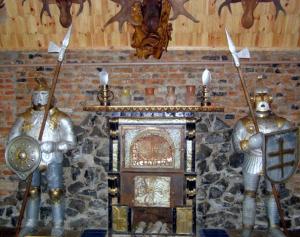 В гостиничном домике есть все условия для жизни, даже самые требовательные к комфорту гости останутся в тепле и уюте и на досуге смогут посмотреть телевизор. А резные скульптуры мистических существ во дворе усадьбы создают незабываемое впечатление сказочного тридевятого царства.