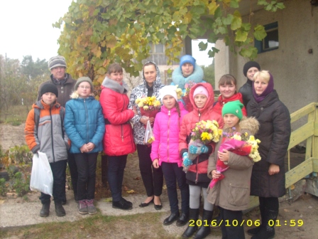 Клуб был готов к празднику – кругом цветы, столы накрыты: цветы, конфеты, печенье, торт, фрукты. Сразу с речью и поздравлениями выступила Елена Хамлюк, она также поздравила и педагогов школы с их праздником – Днем учителя. Потом началась концертная программа, выступали артисты местной самодеятельности: Ольга Демьянович, Тамара Ефремова, Наталья Тереня, Елена Хамлюк, Нина Тимощенко, Елена Птушко.