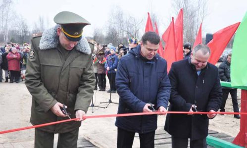 На торжественной церемонии открытия присутствовали исполняющий обязанности председателя районного исполнительного комитета, первый заместитель председателя райисполкома Николай Пьявко, председатель районного Совета депутатов Владимир Кулеш, начальник штаба инженерных войск Вооруженных Сил Республики Беларусь Игорь Ермоленко, командир 188 гвардейской инженерной Новгородской краснознаменной орденов Суворова и Кутузова ІІ-ой степени бригады, полковник Валерий Журавлев, председатель Ленинского сельского Совета Василий Немченя.
