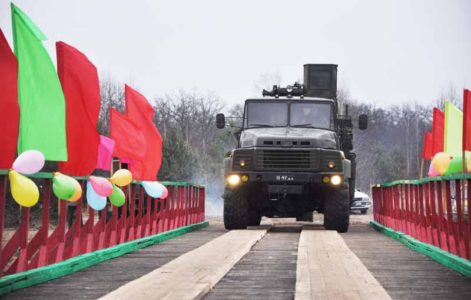 И вот перерезана лента. Мост открыт. Первым по нему проехал военный КРАЗ, который был задействован при его строительстве.