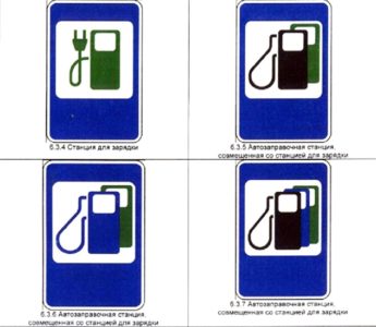 Ожидается увеличение количества электромобилей. Соответственно появились дорожные знаки, информирующие о станциях зарядки и АЗС, совмещенных с ними.