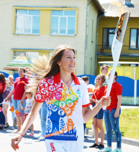 Приятным сюрпризом стало участие нашей землячки Ольги Некрашевич, заместителя директора по основной деятельности ДЮСШ, тренера по легкой атлетике,  призера республиканских спартакиад по настольному теннису, неоднократного победителя областных соревнований по волейболу, в качестве второго факелоносца (уже по ходу церемонии некоторые из тех, кто был заявлен, участвовать не смогли, и произошла рокировка). Она, не сдерживаясь, делилась позитивными эмоциями с присутствующими и придала эстафете душевность.
