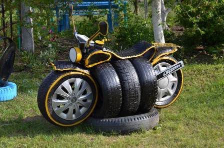 Для всей этой красоты, помимо колес, пара обзавелась хорошим и острым ножом, болгаркой и несколькими банками разноцветной краски. Ну и терпением, конечно же, ведь не так-то и просто вырезать из толстой резины нужный по рецепту элемент.