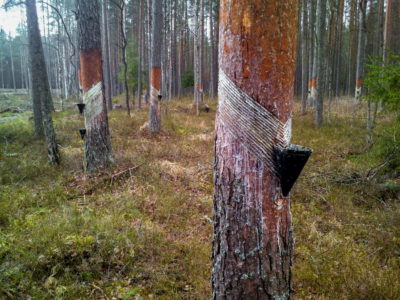 Напомним, подсочка подразумевает периодическое нанесение специальных резов на ствол дерева во время его вегетации с целью получения живицы хвойных. Она является основным сырьем для изготовления канифоли и скипидара. Когда-то лесхозы ее отгружали вагонами. Сегодня объемы значительно снизились.