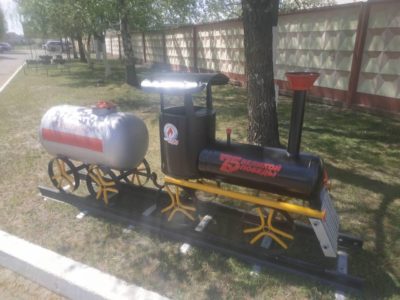 Паравозік з цыстэрнай працаўнікі прадпрыемства ўстанавілі ў гонар 75-годдзя Вялікай Перамогі, тым самым увекавечылі знакавую дату.