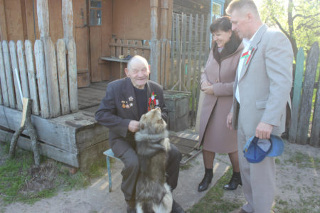 Арсенцій Міхайлавіч падрыхтаваўся да сустрэчы гасцей належна. Выйшаў да старшынь раённых аб’яднання прафсаюзаў Уладзіміра Гулюты, ветэранскай арганізацыі Адама Купрацэвіча, кіраўніка мясцовага сельвыканкама Рыгора Агіевіча, начальніка аддзялення прызыву райваенкамата Арцёма Булаўка пры поўным парадзе, надзеўшы святочны кіцель са шматлікімі ўзнагародамі. У адрас ветэрана прагучала нямала цёплых пажаданняў і віншаванняў з нагоды знакавай для ўсіх нас урачыстасці. Ён унёс таксама свой уклад, каб беларусы жылі пад мірным небам. На фронт у дзеючую армію ён трапіў, калі родную вёску вызвалілі ад фашыстаў. З баямі прайшоў да Германіі. Хаця Арсенцій Міхайлавіч і не надта любіць успамінаць пра тыя ліхія гады. Яму, падлетку, шмат давялося перажыць у акупацыі, бачыць здзекі гітлераўцаў над мірнымі жыхарамі Ляхавічаў і навакольных вёсак. Вельмі добра памятае ветэран прыход у іх край партызан Каўпака і самога славутага камандзіра злучэння. А яшчэ больш Арсеній Міхайлавіч любіць расказваць пра ўласную стваральную працу. Шчыраваў кавалём у калгасе, на падсочцы — у леспрамгасе. Больш трыццаці гадоў прысвяціў гэтым нялёгкім прафесіям. З цеплынёй згадвае дзядуля і тое, як будаваў уласную хату, дзе разам з жонкай вырасціў траіх дзяцей.
