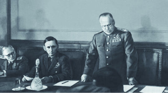 8 мая 1945 года в предместье Берлина Карлсхорсте в 22 часа 43 минуты по центрально-европейскому времени (9 мая в 0:43 по московскому) был подписан окончательный акт о безоговорочной капитуляции фашистской Германии и её вооружённых сил.