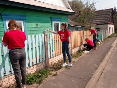 В рамках мероприятий, посвященных 75-й годовщине Победы советского народа в Великой Отечественной войне, волонтеры, актив средних школ №1 и 2 г.Турова с трудовой акцией посетили ветерана Великой Отечественной войны Беляй Анну Ивановну. Активисты и волонтеры покрасили забор, ворота, а также подкрасили дом ветерану ВОВ.