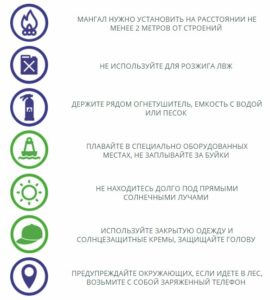 Кроме всего прочего, запасаться придется не только едой и напитками: место для приготовления пищи и сжигания мусора должно быть обеспечено, выражаясь словами МЧС, «средствами пожаротушения». Что это будет – определяйте сами: огнетушитель, емкость с водой или песком. Главное, чтобы в случае, если огонь решит перейти границы дозволенного, было чем отбиваться.