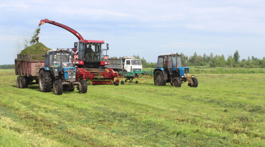 — Гэта дазваляе працаваць тэхналагічна, вытрымліваць аптымальныя тэрміны закладкі траншэй, што, безумоўна, скажацца на якасці будучага корму, — пералічвае плюсы сумеснай працы дырэктар камунальнага сельгаспрадпрыемства “Бялёў” Аляксандр Талмачовец. — У нас такой травы няма. Ды і травяныя ўгоддзі нашай гаспадаркі невялікія, каб у дастатку забяспечыць статак кармамі.
