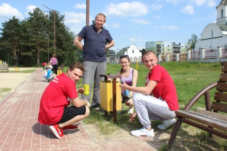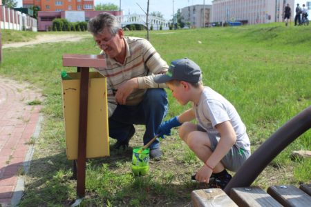 «Дедуль, помоги привести в порядок детский городок», — именно так обратился к Василию Лахвичу его внук Илья. Не помочь любимому ребенку, делится Василий Адамович, не смог. Да и извлек из мероприятия двойную пользу: провел время вместе с дорогим чадом и поучаствовал в поистине полезном деле.  С работы специалиста ради акции отпустили безоговорочно. Василий Иванович и Илья вместе красили урны.