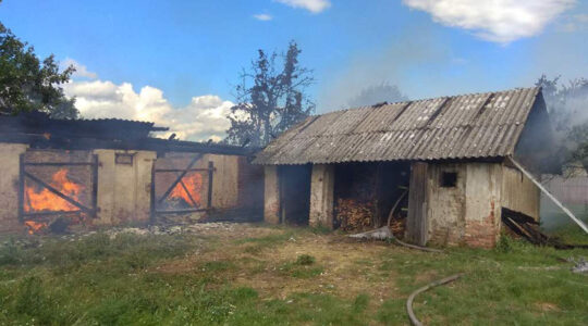 Уже к  средине дня огонь разгулялся в двух кирпичных сараях агрогородка Люденевичи. Тут, по всей видимости, причиной стало неосторожное обращение. Пламя уничтожило и кровлю, и имущество, которое хранилось в помещениях. Виновник устанавливается.