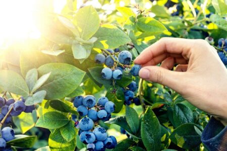 Blueberry picking in early morning