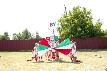После поднятия флага спортивный праздник открыло яркое выступление команды черлидинга из г. Житковичи (СШ №3), а далее начались состязания маленьких спортсменов.