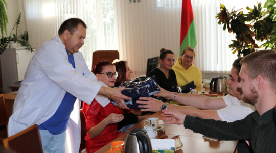 На память о встрече председатель профсоюзного комитета учреждения здравоохранения Николай Бабенко вручил новичкам небольшие полезные подарочки, свидетельствующие о приёме в большую семью медиков района. При этом он адресовал юной смене дельный наказ и наилучшие пожелания: