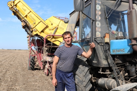 Сярэдняя ўраджайнасць палёў атрымалася амаль 250 цэнтнераў, а валавы збор прыкладна 1200 тон. Гэта другі паказчык у раёне. Уборку вялі ў сельгаспрадпрыемстве як механізавана, так і ўручную. Найперш стараліся механізатары. У ліку іх Віталь Сімончык (на здымку знізу). Дваццаць гадоў ён працуе на трактары, дзесяць з якіх займаецца вырошчваннем бульбы.
