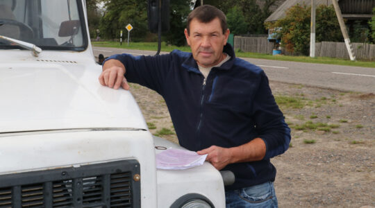 У кааперацыі гэты чалавек шчыруе апошнюю пяцігодку. Развозячы тавары па магазінах, яму прыходзіцца быць экспедытарам і грузчыкам у адной асобе. А калі ГАЗон забарахліць, то і слесарам. За дзень на колы свайго грузавіка толькі па месцы “наматывае” па некалькі соцен кіламетраў. У восеньскую пару яшчэ і выхадныя прыхоплівае на розных кірмашах па-за межамі рэгіёна.