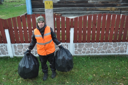 Стартовали мы с улицы Энгельса. Хотя для Николая Юхневича и грузчика Жени Саскевича сегодня это уже второй тайм. Первый они отыграли ещё до обеда, отправив на захоронение почти две с половиной тонны именно мусора. В пути, а мы колесили по восьми улицам райцентра, выясняется интересная деталь. Во-первых, парных контейнеров не так уж и повсеместно, во-вторых, отходы можно выставлять в чём угодно. Как удаётся размеренно вышагивающему к подворьям Жене разобраться, какая тара предусмотрена в утиль, а какую следует оставить как постоянную ёмкость, для меня так и осталось загадкой.