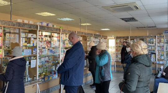 Вернулись в Озёрный — аптеку в «РИО», чтобы посмотреть на масштаб очередей здесь. Народу меньше. Екатерина, замыкающая цепочку, делится, что иногда сама спрашивает у рядом стоящих людей, почему они без защитной повязки. Но в ответ слышит лишь грубости.