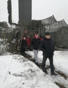 У лютым там знаходзілася частка ваенна-паветраных сіл і войск супрацьпаветранай абароны Узброеных сіл Рэспублікі Беларусь. Мы не маглі не выкарыстаць гэты выпадак, каб не адправіцца да іх на экскурсію, якраз у дзень свята Дня абаронцы Айчыны. Амаль усе старшакласнікі, а таксама настаўнікі выказалі жаданне пабываць у гасцях у сапраўдных салдат.