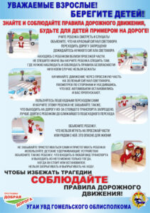 Взрослым пешеходам необходимо предостеречь несовершеннолетних от роковых ошибок на дороге, прежде всего своим личным примером, так как дети подсознательно копируют поведение взрослых и невольно могут вслед за ними нарушить Правила дорожного движения.