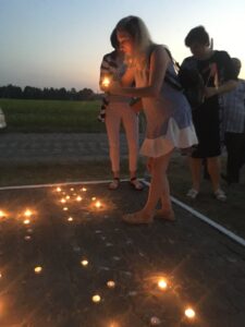 Минута молчания, зажженные свечи , составившие слово ПАМЯТЬ- дать памяти и скорби.