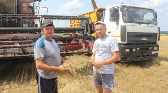 — Настрой цудоўны, адно толькі засмучае, што “нябесная канцылярыя” надта скупая была на ападкі. Таму падчас наліву зярнят сонца значна падпаліла культуры на палетках. Адпаведна і ўраджайнасць невысокая. Тым большая адказнасць кладзецца на нашы плечы, каб вырашчанае ўбраць з мінімальнымі стратамі.