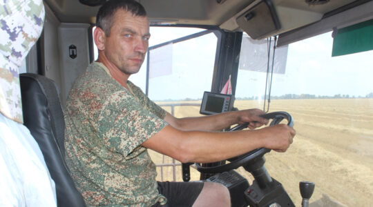 Механізатары Мікалай Жук, Станіслаў Козел, Рыгор Шляга, Канстанцін Козел, Мікалай Хільман, Анатоль Кіслюк, Мікалай Дамарад, а таксама вадзіцелі Сяргей кароткі, Аляксандр Трафімовіч і Міхаіл Жыткавец — гэта тыя людзі, ад зладжанай дзейнасці якіх сёння залежыць лёс ураджаю. У дзень наведвання сельгаспрадпрыемства камбайнеры працавалі ў структурным аддзяленні “Грабянёўскае”. Шэсць экіпажаў “стэпавых караблёў” дружна і бесперапынна пад корань падразалі жытнія сцябліны з каласамі. Спыняліся агрэгаты толькі з адной мэтай, каб выгрузіць напоўненыя бункеры. Менавіта ў такі момант удалося пагутарыць з вопытнейшым механізатарам Мікалаем Жуком.