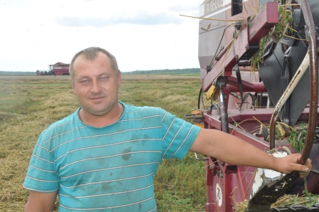 – Гэта мая першая ўборка, – расказвае малады механізатар Алег Чмыхун. – Пасведчанне на права кіраваць трактарам атрымаў у школе, пасля заканчэння якой і ўладкаваўся ў сельгаспрадпрыемства. Канечне, напачатку складана было, але ўцягнуўся. Зараз нават стомы не адчуваю. Менавіта ў такой значнай справе, як жніво, вельмі добра поплеч з вопытнымі калегамі вопыту набірацца. Адным словам, чым магу, тым і дапамагаю.