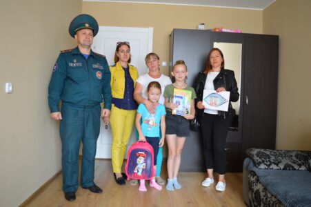 Сегодня первый секретарь райкома БРСМ Евгения Кахаева совместно с представителями Житковичского РОЧС — Пешевичем Игорем и Житковичским ТЦСОН — Еленой Пироговой поздравили Стахуру Ксению и вручили ей портфель с канцелярскими принадлежностями и подарками