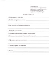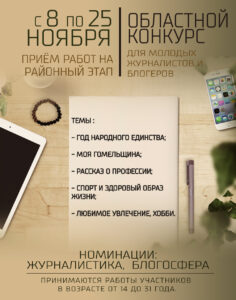 Новости Объявлен конкурс среди молодых журналистов и блогеров 12.11.2021 122 Новае Палессе 0 Comment Конкурсные работы необходимо предоставить по электронной почте на адрес редакции novaepalesse@mail.gomel.by novaepalesse@yandex.by