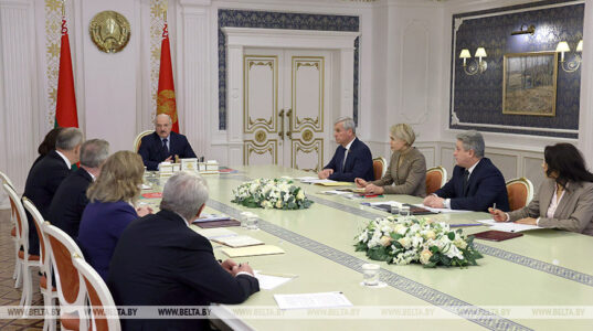 Перед тем как представить проект широкой общественности, его сегодня еще раз обсудят на уровне рабочей группы и Конституционной комиссии. «Сегодня нам надо еще раз обратиться к этому проекту, почитать его вместе, особенно основные положения, чтобы не было каких-то недостатков», — отметил Президент. Он подчеркнул, что опубликованный проект не будет финальным. «Он будет окончательным тогда, когда уже обсудим предложения народа по проекту», — пояснил белорусский лидер.