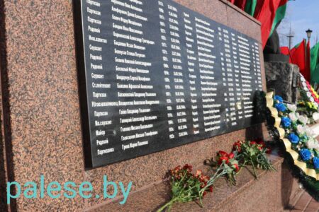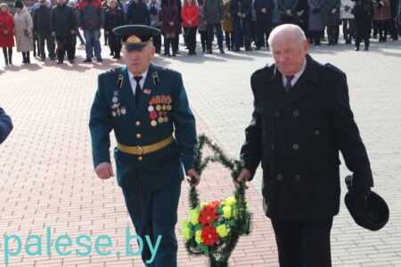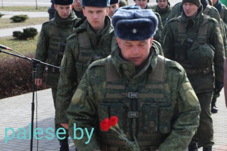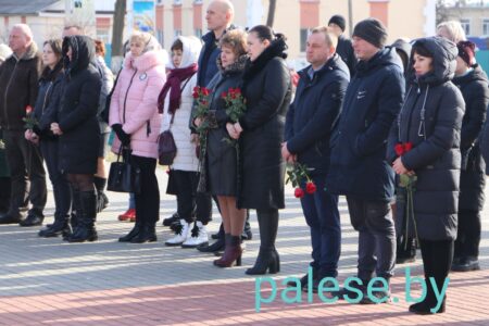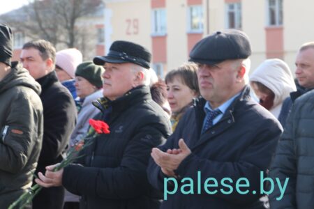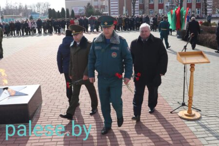 Представители власти, общественных организаций, организаций и предприятий Житковщины, солдаты возложили к памятнику венки и цветы.
