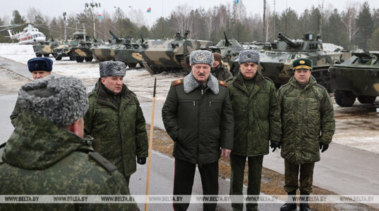 Президент Беларуси, главнокомандующий Вооруженными Силами Александр Лукашенко сегодня посетил полигон Осиповичский, где проходит совместное оперативное учение вооруженных сил Беларуси и России «Союзная решимость — 2022», передает корреспондент БЕЛТА.