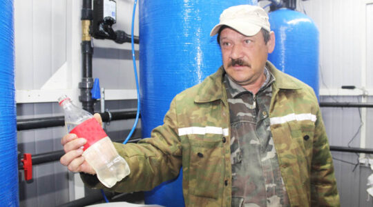 Сегодня через станцию обезжелезивания в агрогородок поступает живительная влага с 0,1 миллиграма (при норме 0,3) Fe на литр Н2О. А вот добиться результата удалось не сразу. Долго ломали головы и настраивали оборудование его поставщики. Вода даже из одной скважины бывает разная.  У нас пока такая станция единственная. Химический состав живительной влаги, кстати, исследуют в Житковичах каждую неделю, а на небольших участках, в основном, сельских — раз в квартал. Если анализ некорректный, а как правило, происходит это по техническим причинам, сразу же принимают меры. Тем более, что санитарно-эпидемиологическая станция всегда перепроверяет состав живительной влаги.