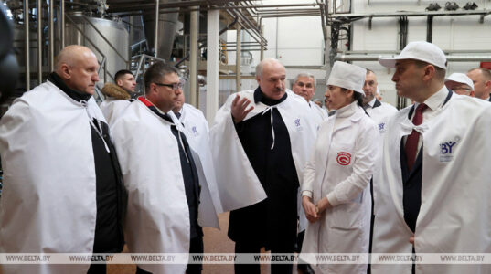 Глава государства интересовался работой предприятия, технологиями и степенью переработки сырья. В частности, речь о молочной сыворотке, которая в прежние времена не перерабатывалась, а ее попросту утилизировали. Однако это востребованное сырье и экспортный продукт.