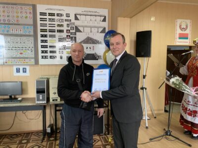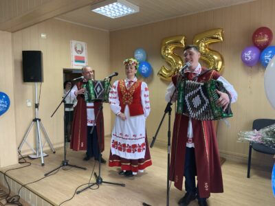 Филиал -16 ОАО отмечает 55 лет! Прямо сейчас его поздравляют генеральный директор ОАО « Гомельоблавтотранс» Дмитрий Старостенко, заместитель председателя райисполкома Дмитрий Лобко, партнеры и ансамбль «Вечарына».
