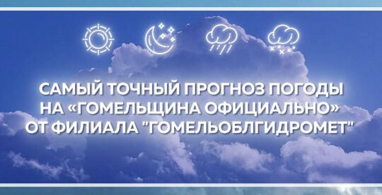 Днём в Гомеле и по области — переменная облачность. В Гомеле без существенных осадков (вероятность осадков 5-10 %), по области местами кратковременные дожди. По области в отдельных районах грозы. Ветер юго-западный 4-9 м/с. Максимальная температура воздуха в Гомеле +19..+21 °С, по области +17..+22 °С