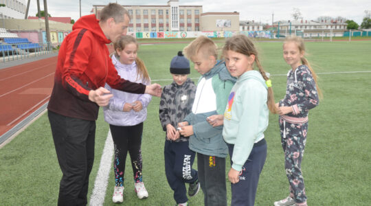 Директор ДЮСШ Юрий Доваль радости не скрывает: действительно четыре комнаты, где ребята, да и взрослые оставляют сменную одежду и обувь, давно нуждались в реанимации. Но первым, обратившим на это  пристальное внимание, подчёркивает тренер, стал не кто иной, как председатель райисполкома Александр Сидоренко. Именно с его лёгкой руки популяризовать здоровый образ жизни и тренироваться на стадионе стало гораздо комфортнее и …светлее. Ведь, как известно, прошлой осенью его осветили. Восемь столбов и фонари – дело трудоёмкое, но стоящее. Что говорить, в короткие осенне-зимние дни спортивная жизнь здесь из-за густых, неуютных сумерек замирала уже около 16 часов. Теперь же — бьёт ключом, не взирая на пору года и время. Такой формат увеличил число любителей спорта и движение на «арене». А чтобы уж наверняка настроение соответствовало не только здоровому телу, но и весёлому духу, художники, а ими стали представители сферы образования и центра культуры, на скучно-серый бетон забора нанесли граффити. Тематика получилась спортивно-патриотическая, а в общем очень уместная.