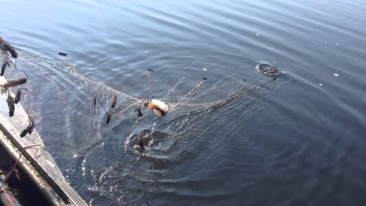 Очередного любителя острых ощущений задержали с сетью возле деревни Борки. Мужчина сорокаметровой сетью поймал всего одну плотву. Но запомнит это надолго.