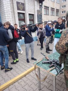 В Житковичком районе военно -патриотическая акция «»Гордимся армией своей» продолжилась в профессиональном лицее. Силы специальных операций встретились с лицеистами, познакомили их с оружием и военной техникой, рассказали о службе в армии.