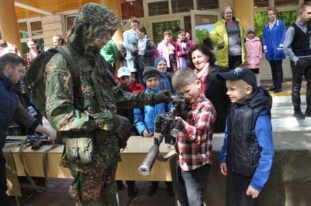Элитное подразделения вооружённых сил – потомок славно известных воздушно –десантных войск. Голубые береты, кстати, и сегодня остаются непременным элементом формы. Как отметили офицеры, это относительно молодой род войск в государстве, начавший свою собственную историю с 2007 года. Но при этом его девизом остался тезис «Никто, кроме нас!». Почему переименовали в силы специальных операций? ВДВ больше направлены на то, чтобы вести наступательные действия, уточнили военные, а у нас в Беларуси – оборонительная доктрина. «Мы вокруг себя никого не считаем противниками. Не можем воевать в другой стране, но мы способно защититься». Сегодня ССО представляет три десантные бригады, в том числе– специального назначения. Представитель именно этого подразделения, проходящий срочную службу, поделился с ребятами своим опытом и планами. В частности, он после армии, освоив навыки владения оружием, обретя отличную физическую форму и подкопив интеллектуальный багаж, намерен связать свою жизнь с правоохранительными органами. А в целом, любой из школьников может предпочесть профессию военного, не только поступив на службу по контракту, но и окончив соответствующий вуз. Кстати, отметили офицеры, в этом году и для девушек мест в военной академии стало больше.